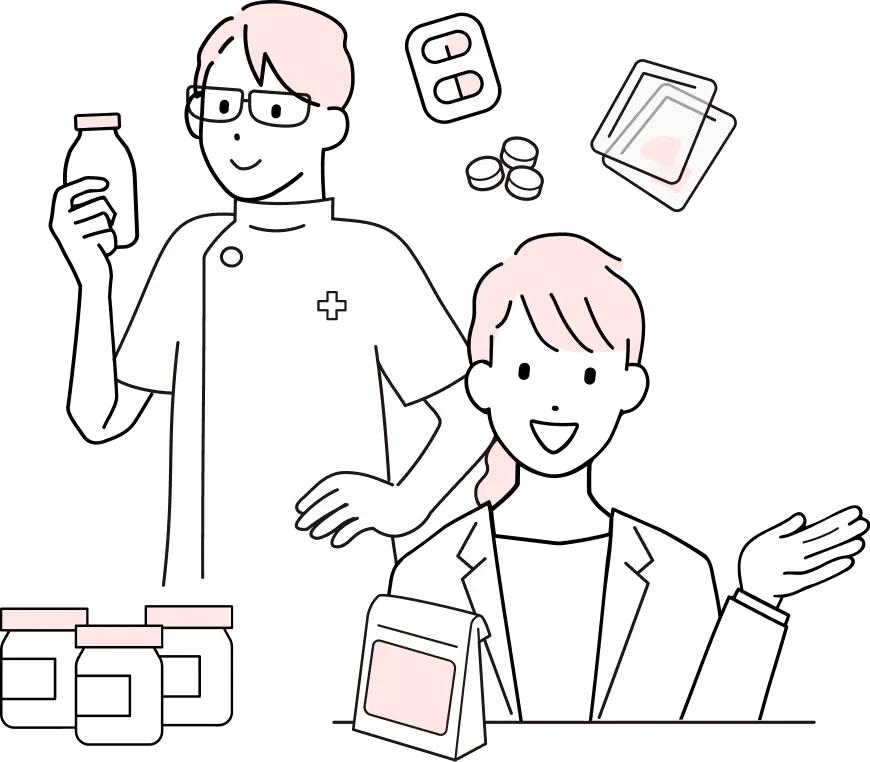処方せんが要らない一般用医薬品を販売したり、お薬や健康に関するさまざまな相談に応じます。
